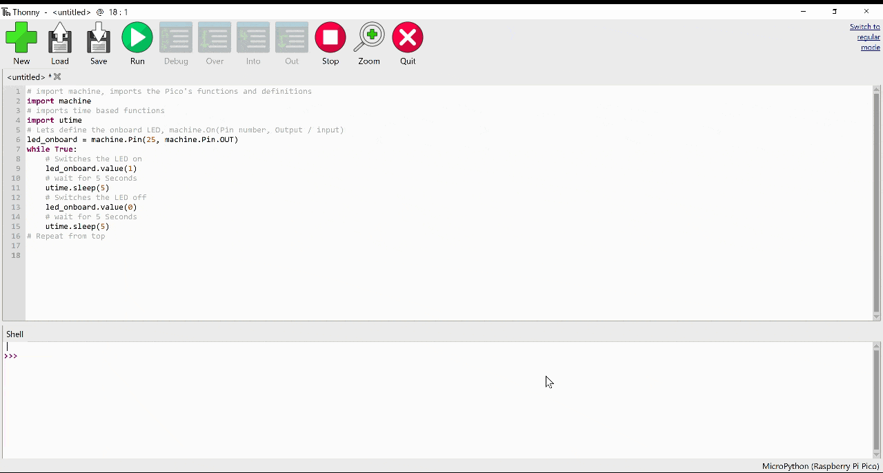 Now look at the Pico Board, the LED should be blinking every 5 seconds